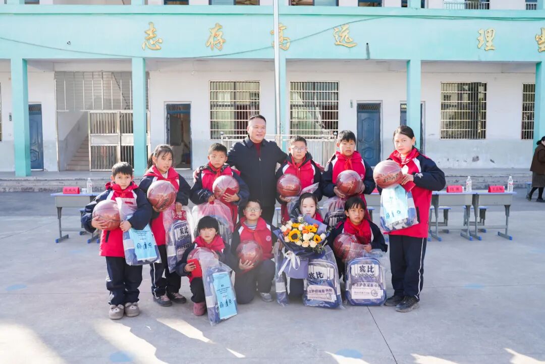 期间,饶明芳会长特意赶回家乡必姆镇花桥小学,开展“情系家乡 帮扶幼苗”捐助困境学生公益活动,为10名贫困学生颁发现金红包共计2万元,并送上新书包及体育用品,希望同学们度过愉快的新年。