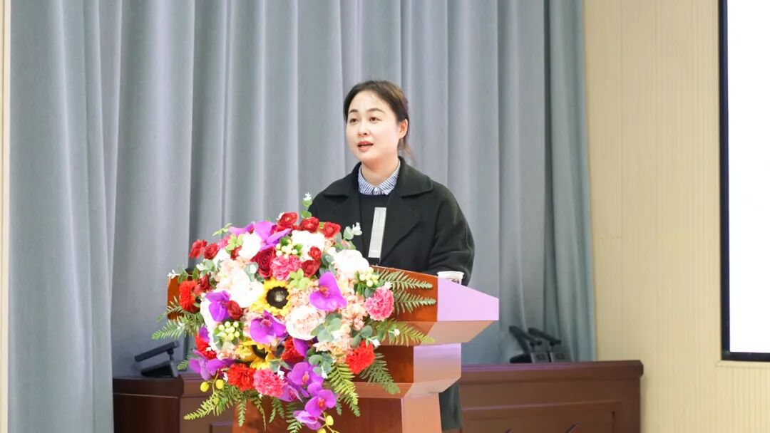 镇党委书记李俊介绍必姆镇“姆爱万家”工作情况。