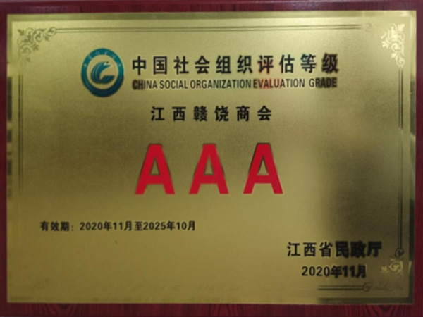 2020年在全省社会组织等级评比中被江西省民政厅评为“3A商会”