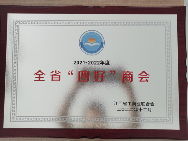 2021-2022年度获得了江西省工商业联合会、江西省总商会授予的“全省‘四好’商会”称号